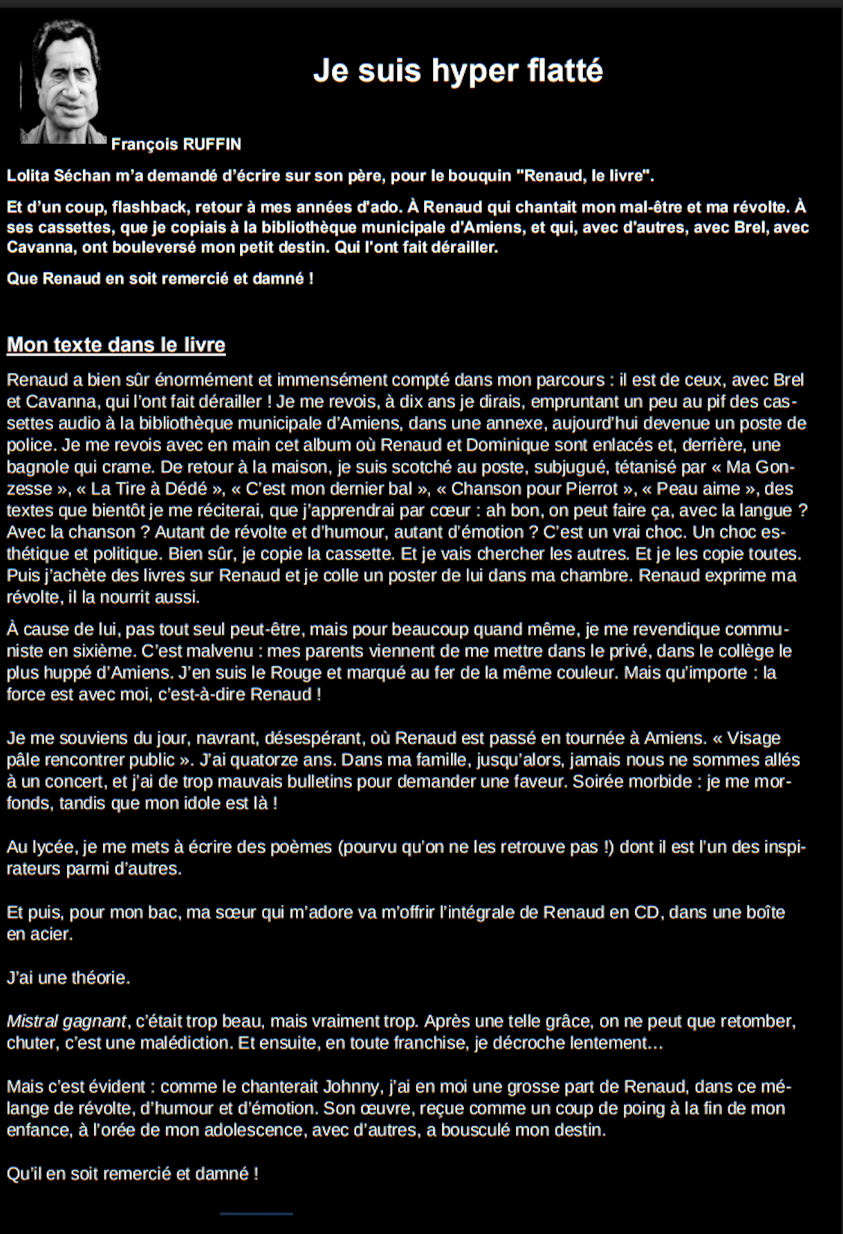 Décembre : 27/12 : Le Post Hier de l’An prochain * 19/12 : Le Renaud de Gery Tolosan * 16/12 :Oh Renaud Vieux Frère *13/12 : Post Hier 344 * 10/12 : Korrigan à Lille avec le Secours Pop’ 04/12/25 * 08/12 : Ruffin-Renaud ...et aussi * 05/12 : La voix du Nord-Secours Pop’ 04/12/25 * 04/12 : Téléthon 2025 post |