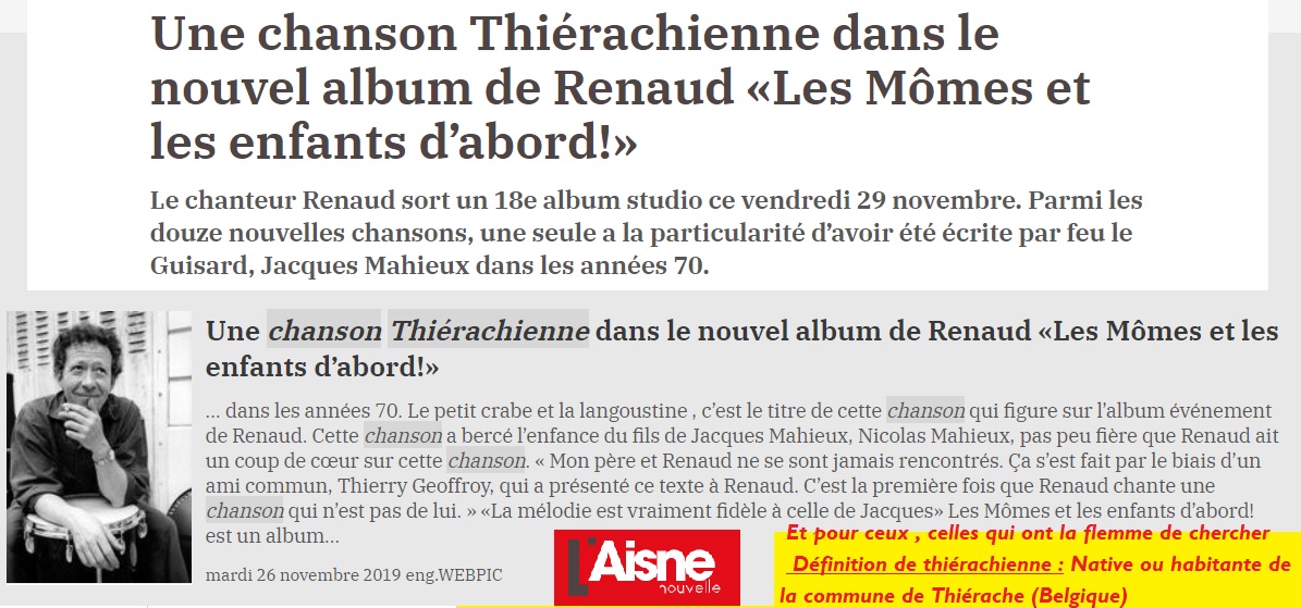 Le premier Single de l'album de Renaud "Les Mômes et les enfants d’abord" sortirait le 13 Novembre et Les Z'amimals, le premier single sortira le 13 nov. 2019.