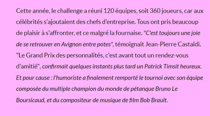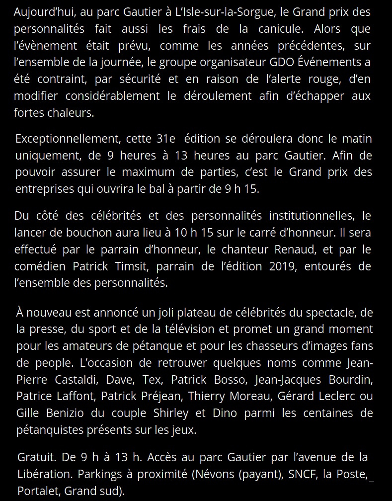 "Il a donné le coup d'envoi. Il est encore fatigué mais... Il n'est pas en très très grande forme mais bien évidemment, il a - comme on dit - toute sa tête avec lui. Il est quand même très fatigué", a commencé à expliquer le chanteur Gérard Leclerc avant de rassurer les fans : "Il s'anime. Il était très très heureux d'être là (...) d'être avec des gens, de pouvoir parler" (Lundi 01/07/19)