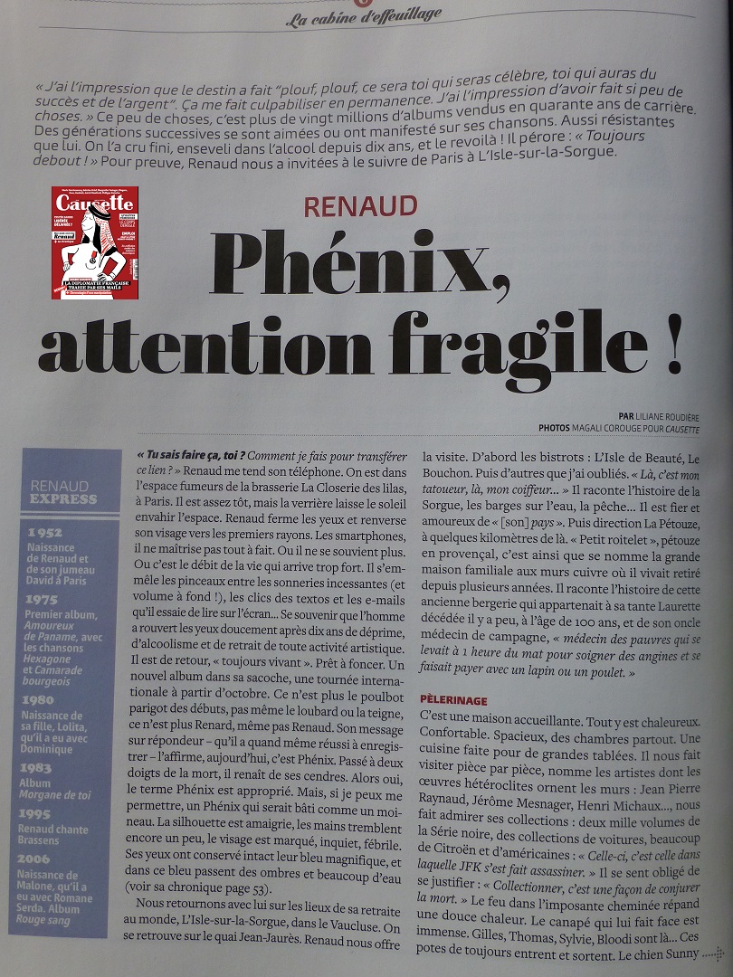 Renaud doit tenir une chronique mensuelle dans le magazine féministe '' Causette "