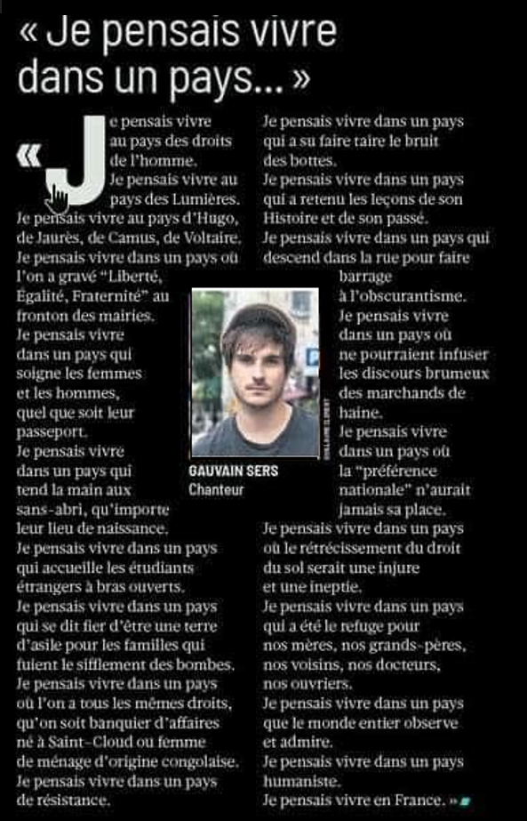 *Cette chanson, Renaud m’a dit qu’il aurait bien aimé l’avoir écrite. C’est l’un des plus beaux compliments que j’ai entendu de ma vie. (Gauvain Sers)