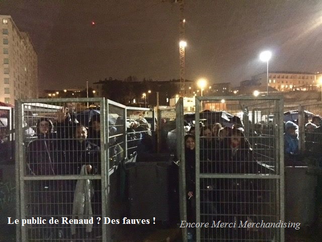 Dernier concert, non pas de Renaud , mais pour moi c'est pratiquement certain. En effet, je me suis rendu compte que les fléaux qui me frappent (surdité et malvoyance ) s'aggravent de jour en jour. Ils risquent de ne pas me permettre  de goûter pleinement le concert et si cela  devenait demain inéducable (?) comment pourrais-je assister à un concert de Renaud dans les années prochaines ( car j'espère pour les générations montantes , Renaud pourra continuer lui de paraître sur scène) ?